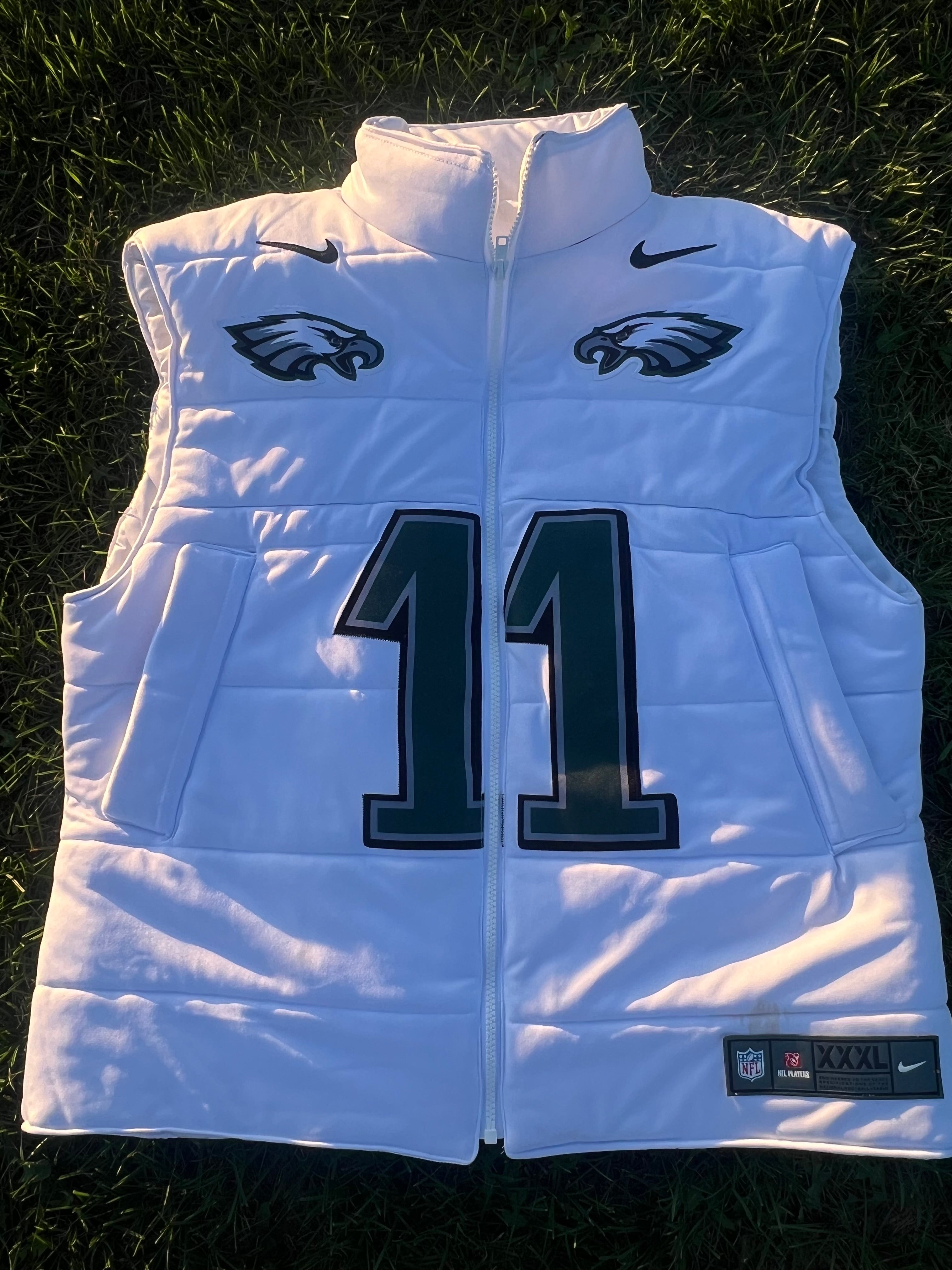 Custom made A.J Brown #11 Philadelphia Egales Jersey puffer vest Measurements: