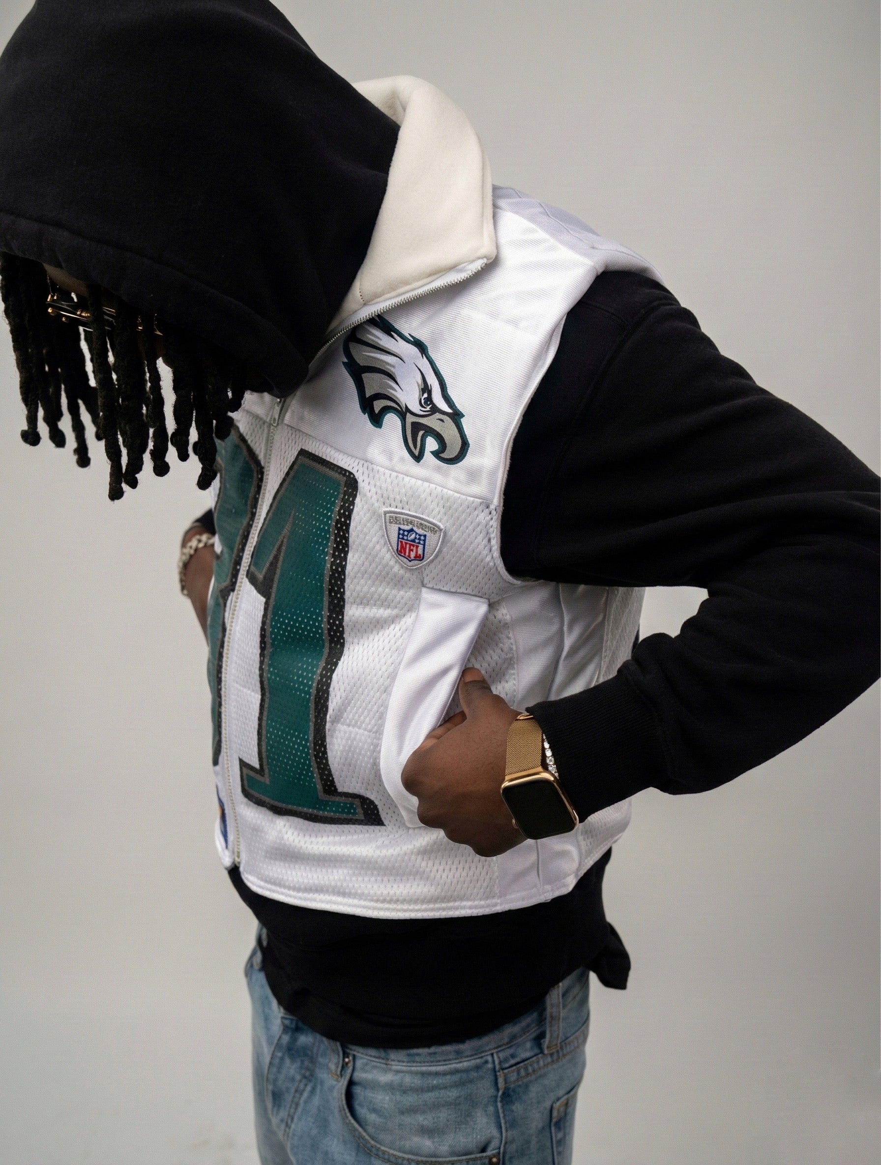 Turn your favorite jersey into team-issued outerwear. This isn’t merch — it’s a custom piece designed to live beyond game day.