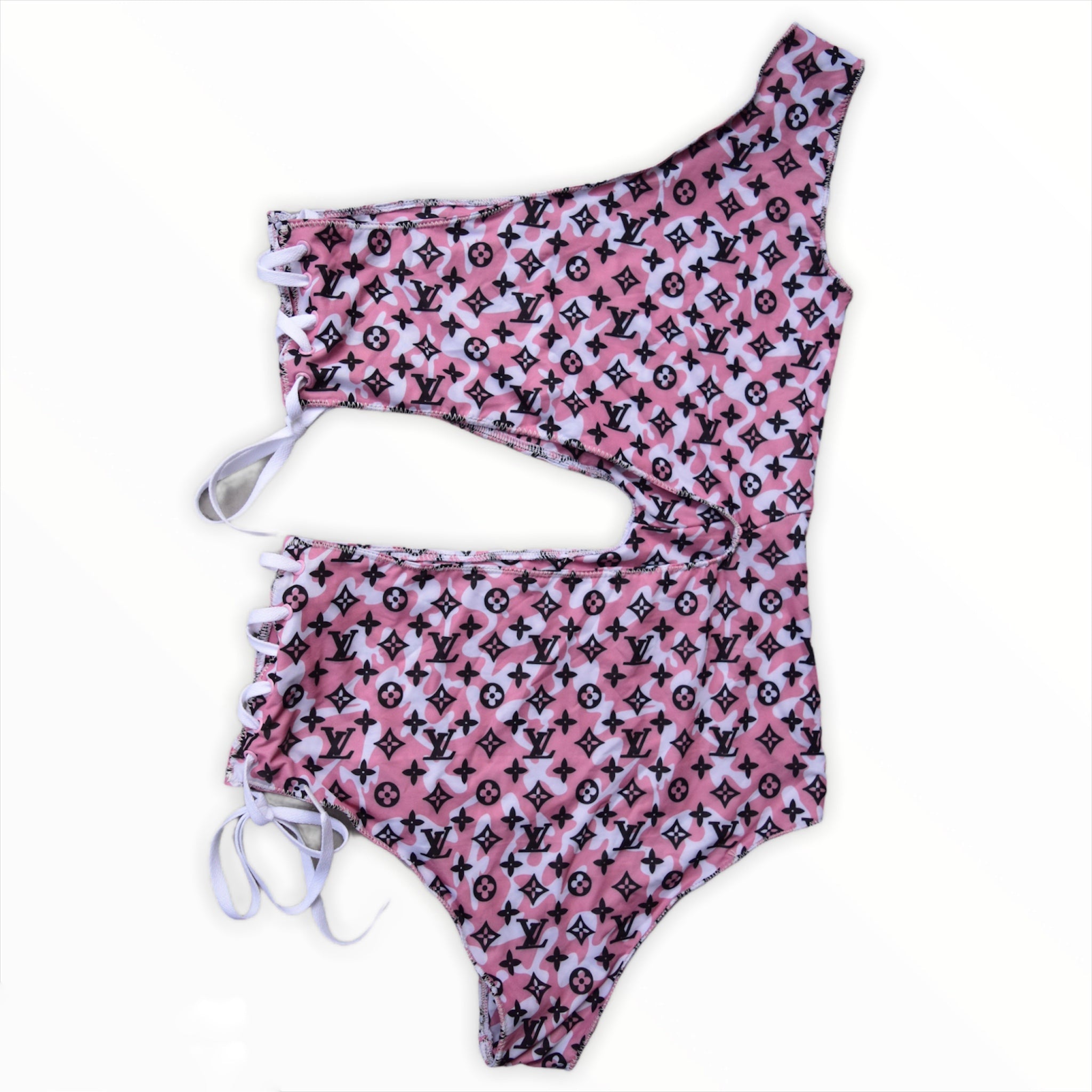 👙 Custom Made Pink LV Camo One-Piece Swimsuit: Dive into Luxury 🌸